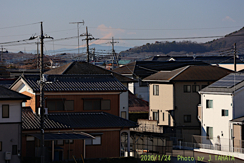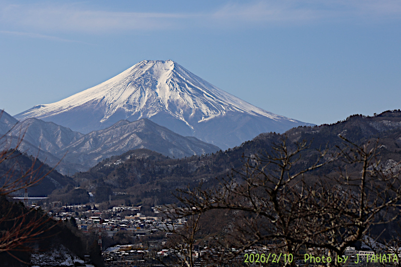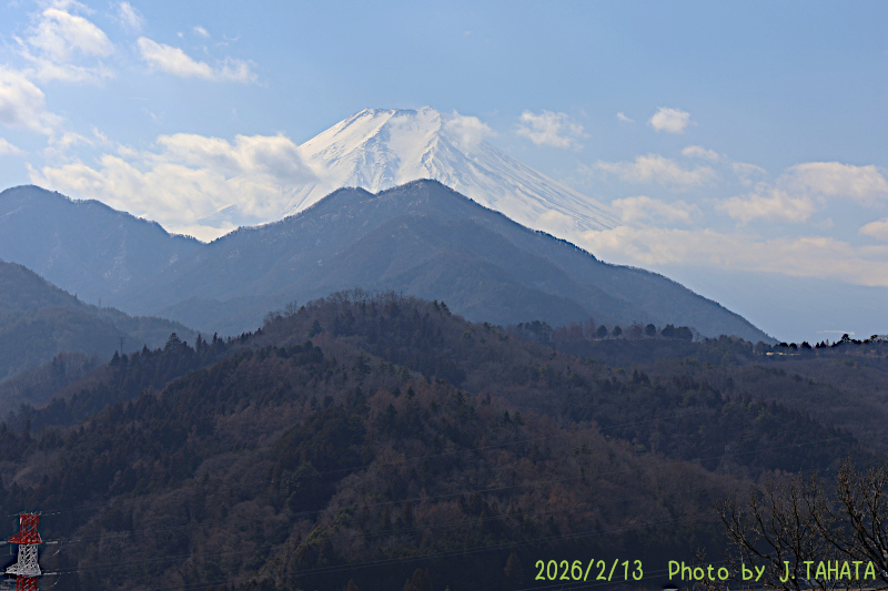129キロメートル離れた群馬県みどり市のわたらせ渓谷線大間々駅から見える富士山を掲載しました。