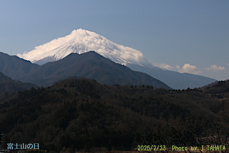2月23日 朝は雲に隠れていましたが、9時ごろから雲がとれはじめて午後にはくっきり見えました。気温が高く富士山の麓の河口湖で16時現在の最低気温が9.2℃、最高気温が19.3℃です。